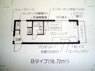 設備 <個室> ・フローリング ・エアコン(フローリング張替え、エアコン交換済) ・ユニットバス ・キッチン、IHクッキングヒーター ・BS端子 ・バルコニー ・防犯ベル付インターホン ・机 ・椅子 ・ベット ・本棚 ・クロゼット ・下足入れ ・インターネット任意加入(J:COM・3,300円 税別)全室対応 ・ケーブルテレビ接続可 ・地上デジタル ・電話端子(ADSL接続可) ・B、Cタイプは防水バン付
